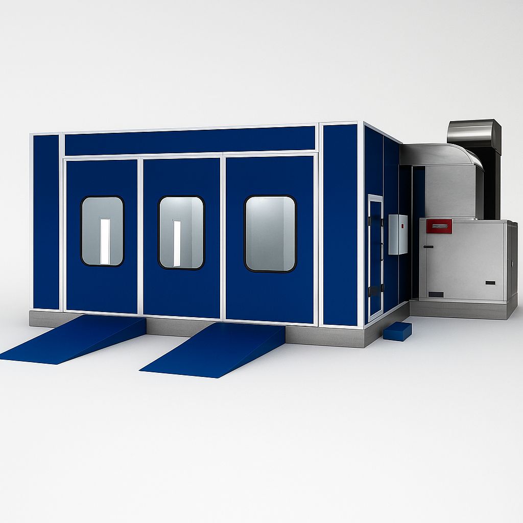The Paint Booth is a high-efficiency, metal-based solution designed to provide optimal ambient conditions for car painting and drying. It features a 5.5 KW intake blower and a 5.5 KW exhaust blower, ensuring proper airflow and ventilation for a dust-free painting environment. The heat exchanger and diesel burner further enhance the drying process, delivering fast and uniform results. Built with customization options, this paint booth is ideal for automotive workshops, body shops, and industrial applications. Metal-based structure for durability and stability. 5.5 KW Intake and Exhaust Blowers for effective airflow management. Heat exchanger and diesel burner for efficient drying. Customizable design to meet specific workshop requirements. External size (M) 6.1 X 4.4 X 3.9 Internal size (M) 6.0 X 4.0 X 3.5 Entrance Width(M) 3